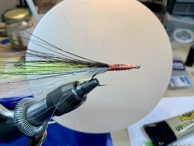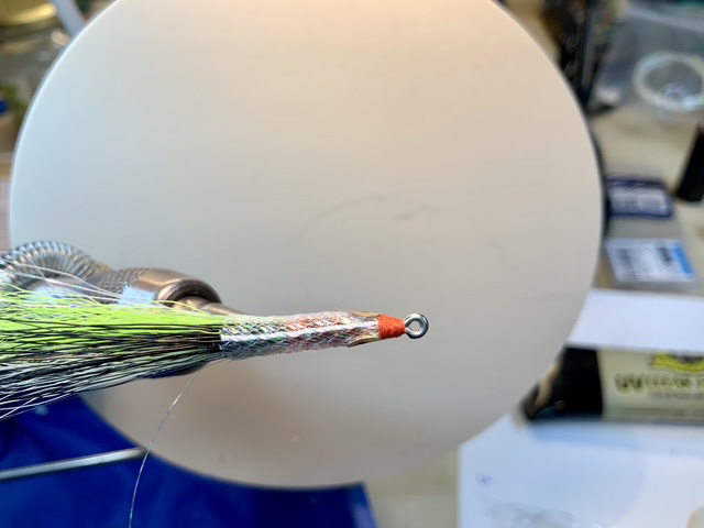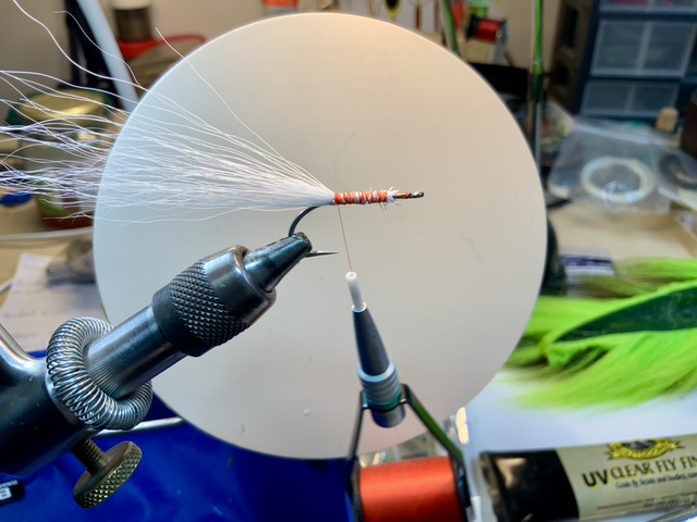 Als dit gedaan is binden we de vlieg af en knippen het binddraad af: