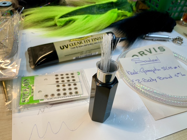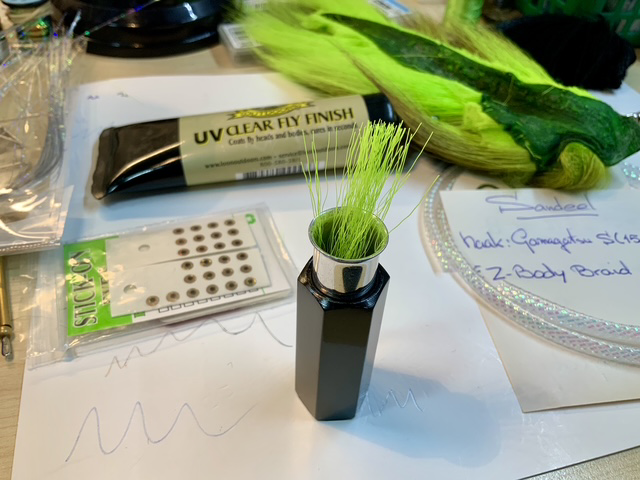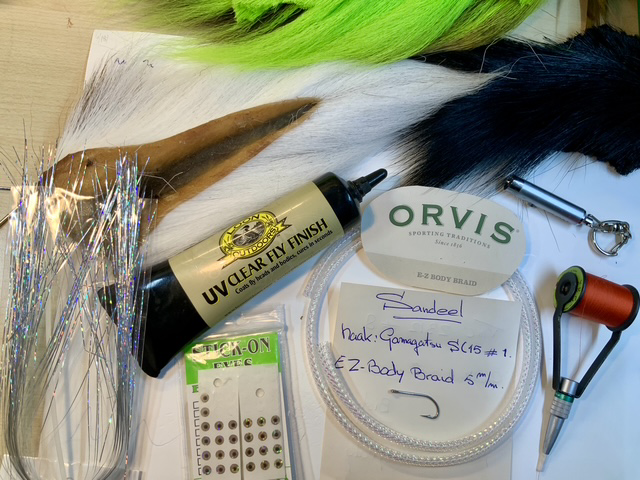 - Drie kleuren bucktail in mijn geval wit, groen en zwart of de kleur naar eigen inzicht.
