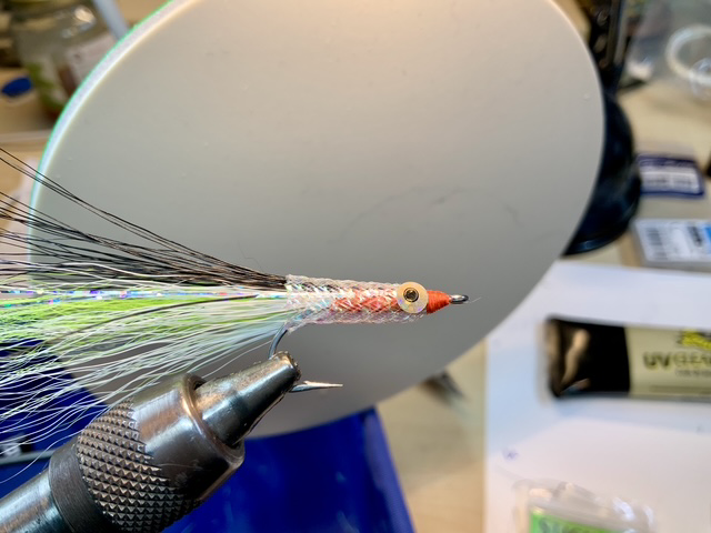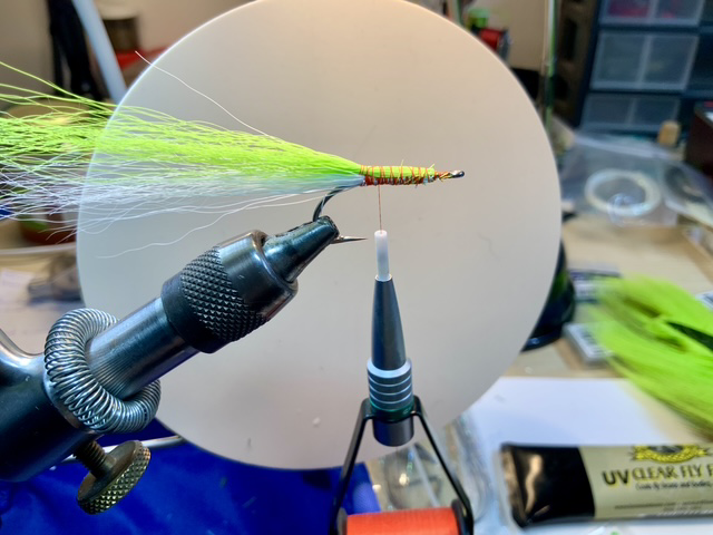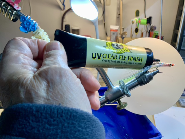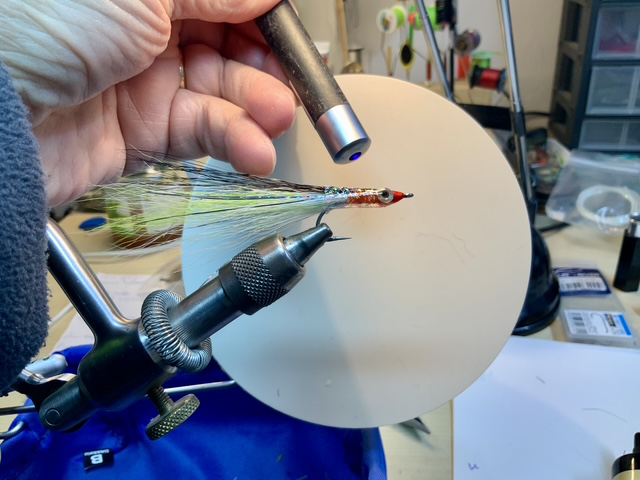 Vervolgens harden we het lijfje met het UV-lampje uit en klaar is de vlieg: